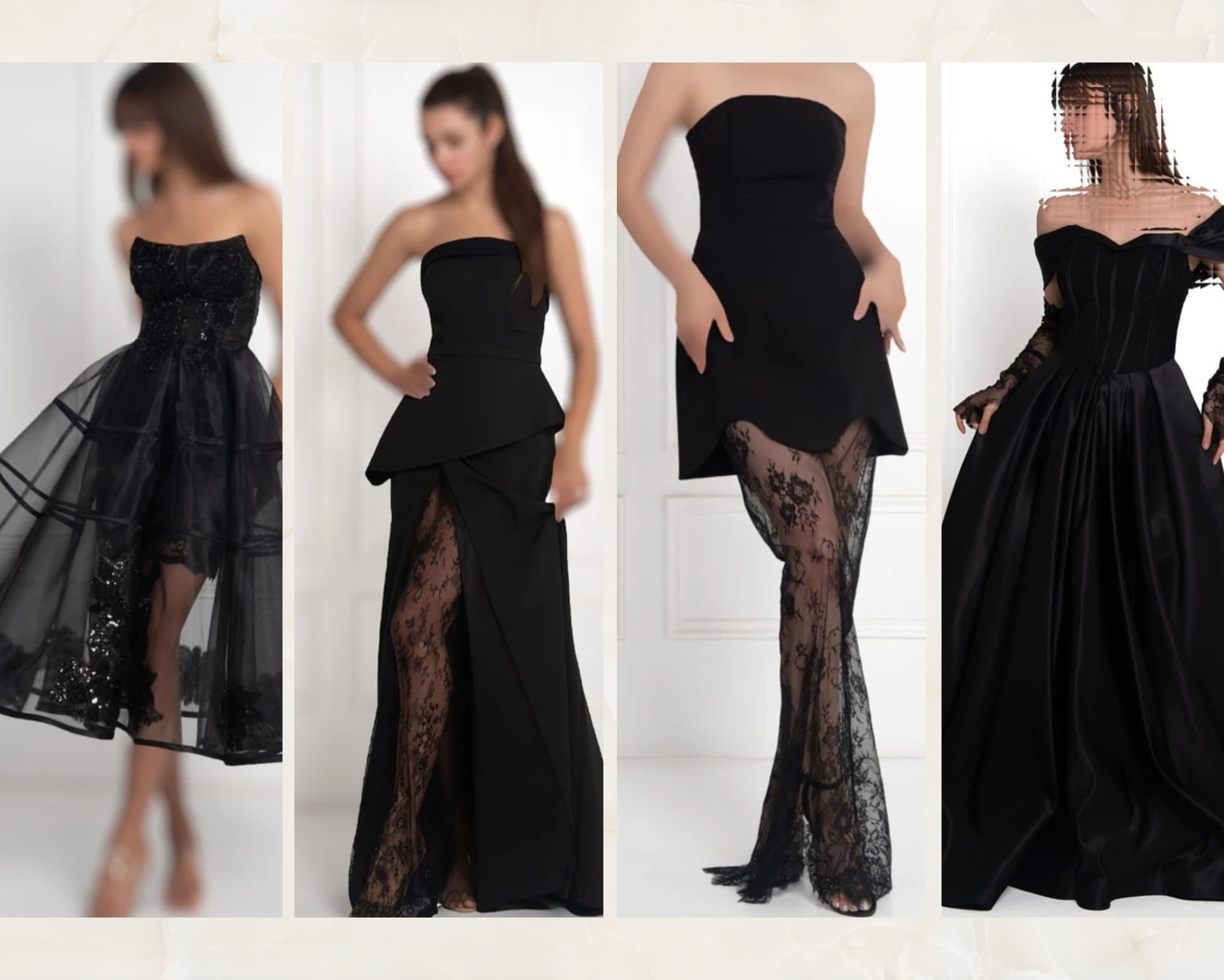 پیراهن مشکی مجلسی زنانه با دامن گیپور