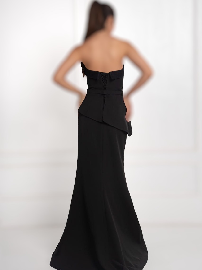 پیراهن مشکی مجلسی زنانه ترکیب کرپ و دانتل